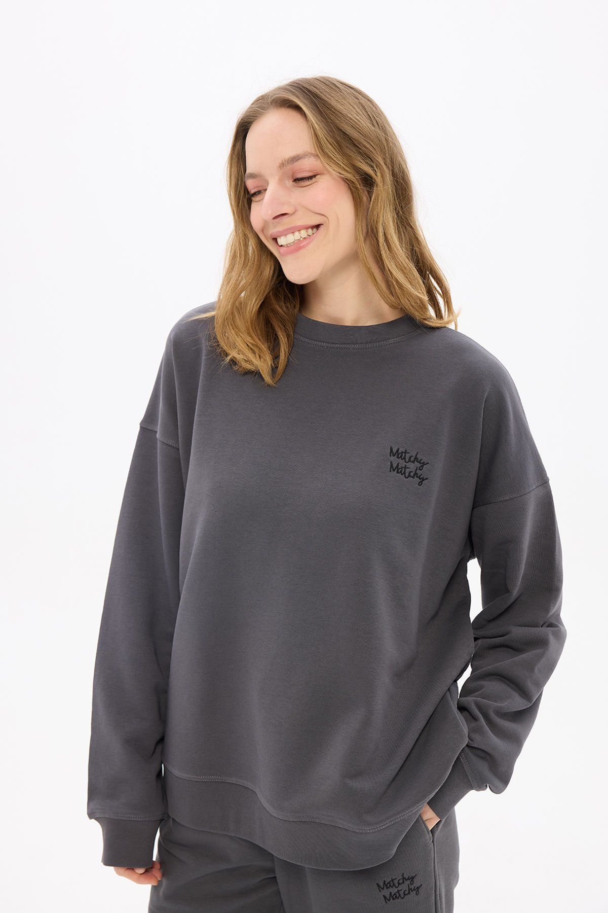 Kadın Antrasit Oversize Sweatshirt