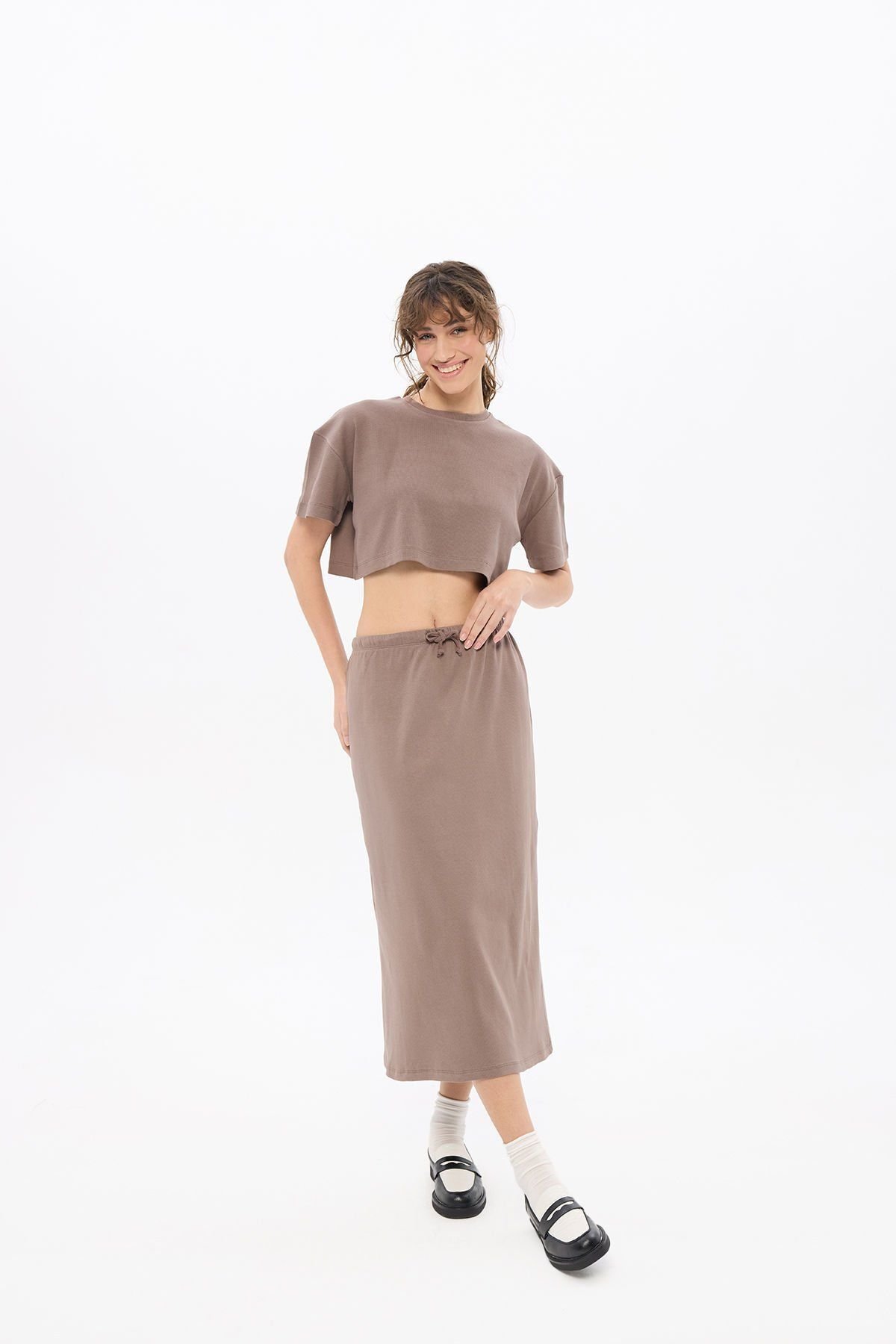 - Crop ense kısmında markanın logosu silikon etiket ile gözükmektedir.