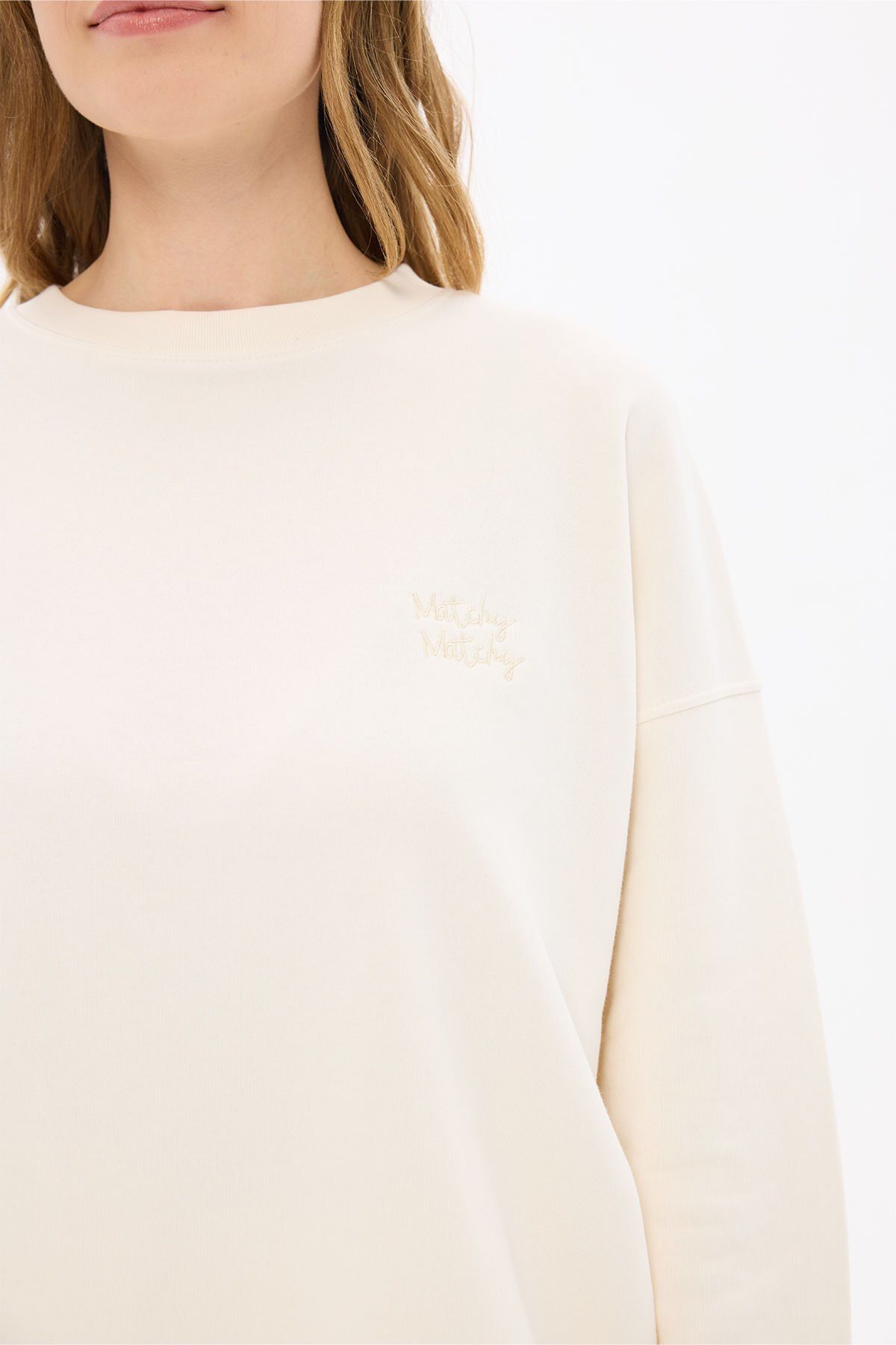 Kadın White Rose Oversize Sweatshirt